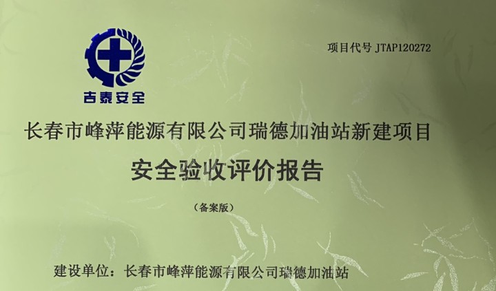 JTAP120072--長春市峰萍能源有限公司瑞德加油站新建項目安全驗收評價