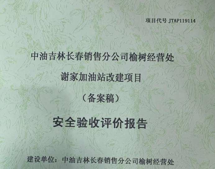 JTAP119114--中油吉林長春銷售分公司榆樹經(jīng)營處謝家加油站改建項目安全驗...