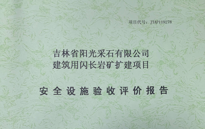 JTAP119278--吉林省陽(yáng)光采石有限公司建筑用閃長(zhǎng)巖擴(kuò)建項(xiàng)目安全設(shè)施驗(yàn)收評(píng)...