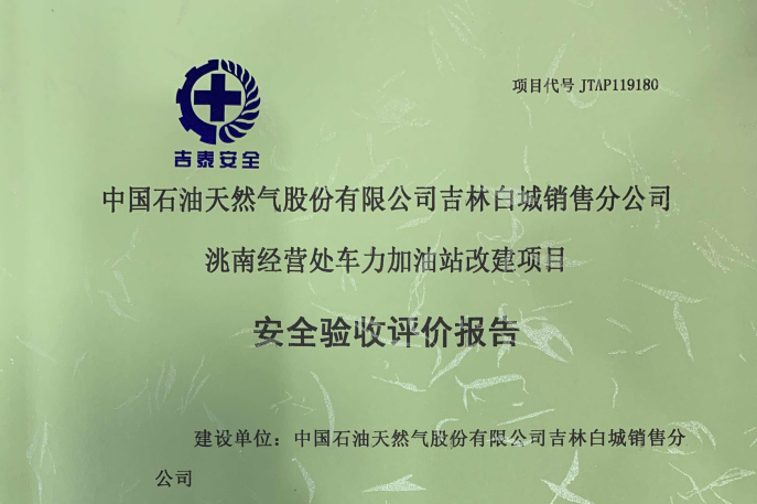 受白城市到保鎮(zhèn)高平加油站的委托,吉林省吉泰安全技術(shù)服務(wù)有限公司對(duì)白城市到保鎮(zhèn)高平...