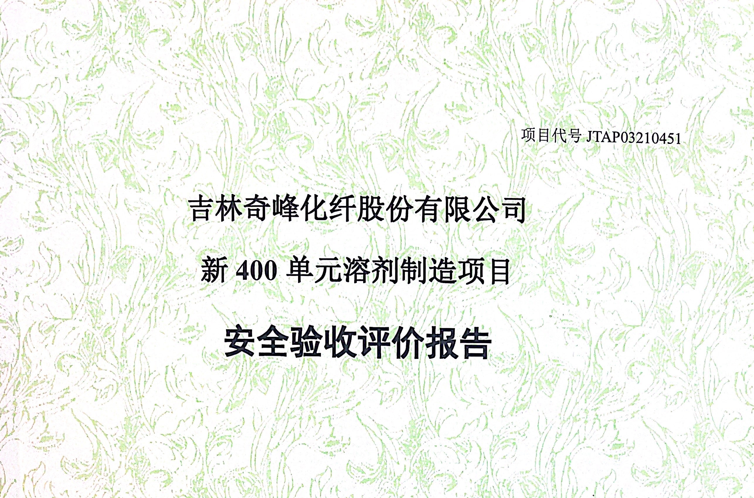 JTAP03210451--吉林奇峰化纖股份有限公司新400單元溶劑制造項目安全...