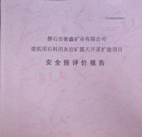 JTAP0220230270--磐石市衡鑫礦業(yè)有限公司建筑用石料用灰?guī)r礦露天開采...