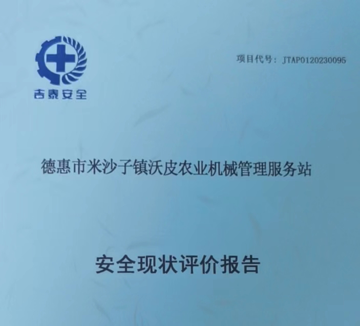 JTAP0120230095--德惠市米沙子鎮(zhèn)沃皮農業(yè)機械管理服務站安全現(xiàn)狀評價